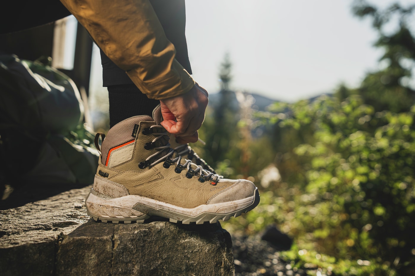 Overdelen er laget av vannavvisende, vokset nubuck som gir slitestyrke og støtte uten å øke vekten. GORE-TEX® membranet sørger for pålitelig vanntetthet og høy pusteevne, slik at føttene holder seg tørre og komfortable gjennom skiftende forhold.