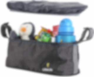 Vognveske med praktisk oppbevaring til både barn og personlige eiendeler. Laget av polyester og helt uten BPA. 2 innebygde lommer til drikke eller lignende, 2 lommer til oppbevaring og 1 lomme med glidelås. Det medfølger et regntrekk. Passer de fleste barnevogner.