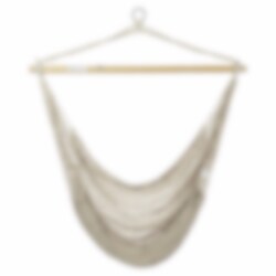 Hengekøyestolen er enkel å sette opp – alt du trenger følger med – og den er like perfekt for stille stunder med en bok som for myk gynging i sommersola. Det luftige designet gir en sval følelse selv på varme dager, og passer like godt innendørs som utendørs.