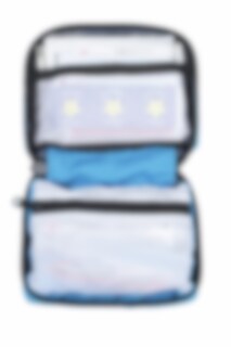 Et kompakt førstehjelpsett for de vanligste skader. Inneholder; Håndbok (engelsk),Saks, pinsett, termomenter (til pannen), sykehusteip, rensekrem, rense wipes, bandasjer (medium), kompress, plaster, gasbind, brannbandasje, sikkerhetsnåler, branngele, øyedusj og stjerne klistermerker.