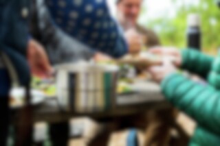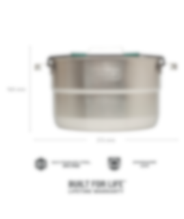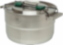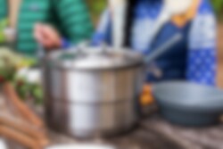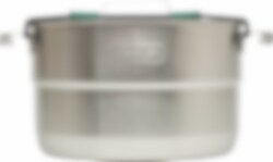 Multi-Scratch resistant, 18/8 rustfritt stål kjele + ventilert lokk. 3-lags base på stekepannen gir en jevn oppvarming. Nesting system, sparer plass når pakket. Inneholder: 1stk 3,5 L kjele m ventilerende lokk, 1stk 0,94 Stekepanne, 1stk Underlag til kjele, 4stk Dype skåler, 1stk Stekespade (2-delt), 1stk Serveringskje (2-delt), 4stk Tallerkner, 1stk Gryteklut, 4stk Sporks, 1stk Skjærebrett, 1stk Oppvask brakett