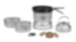 Settet har 2 kjeler på 1,75 og 1,5 liter, en kaffekjele på 0,9 liter og en stekepanne på 22 cm i diameter. Stekepannen har non-stick som gjør at maten ikke setter seg så lett fast. Settet egner seg godt for opptil 3-4 personer. Brenneren bruker rødsprit som brensel og har en øvre og nedre vindbeskyttelse.
