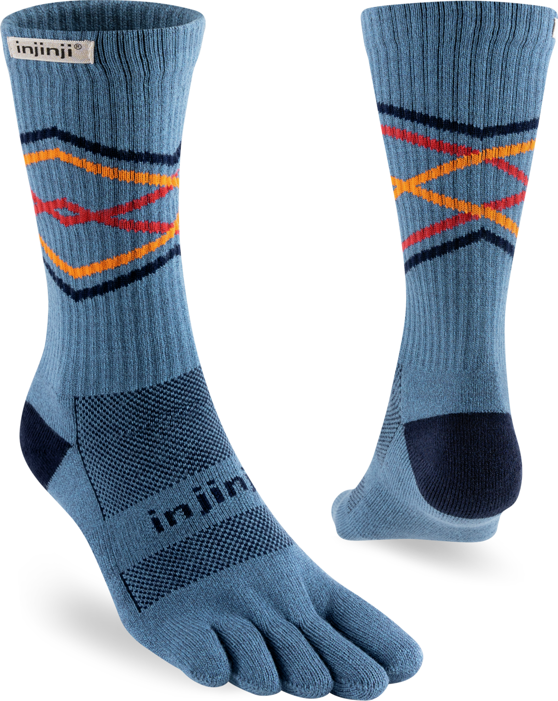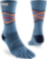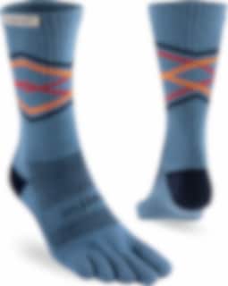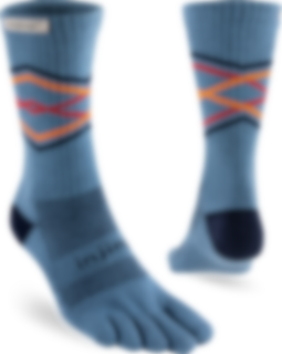 Trailserien til Injinji er konstruert for å takle ujevnt og uforutsigbart terreng, ved å tilby best mulig passform, følelse og beskyttelse i alle typer sko. Med en dobbelt elastisk mansjett, holder man skitt og rask ute. Høyden på denne modell er Crew, når midt opp på leggen. Tykkelse er Midweight (medium tykkelse).