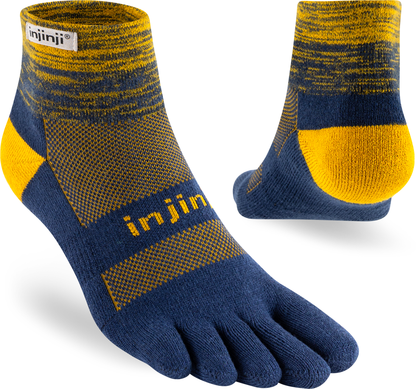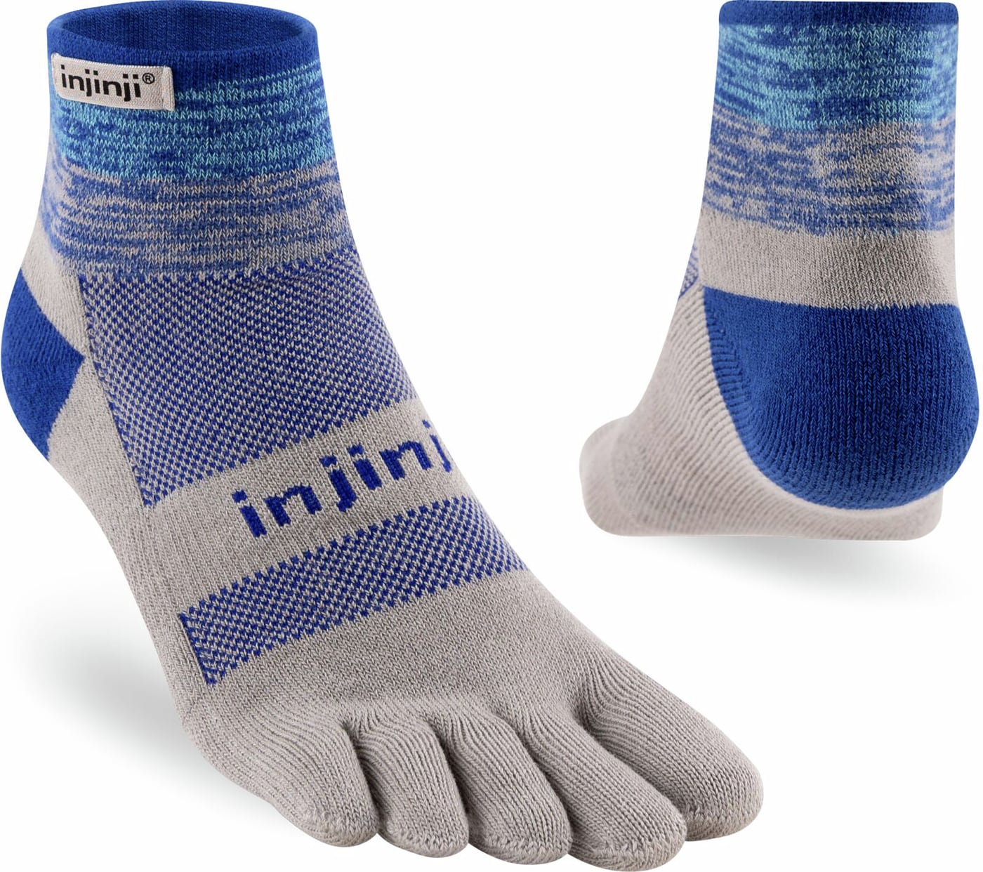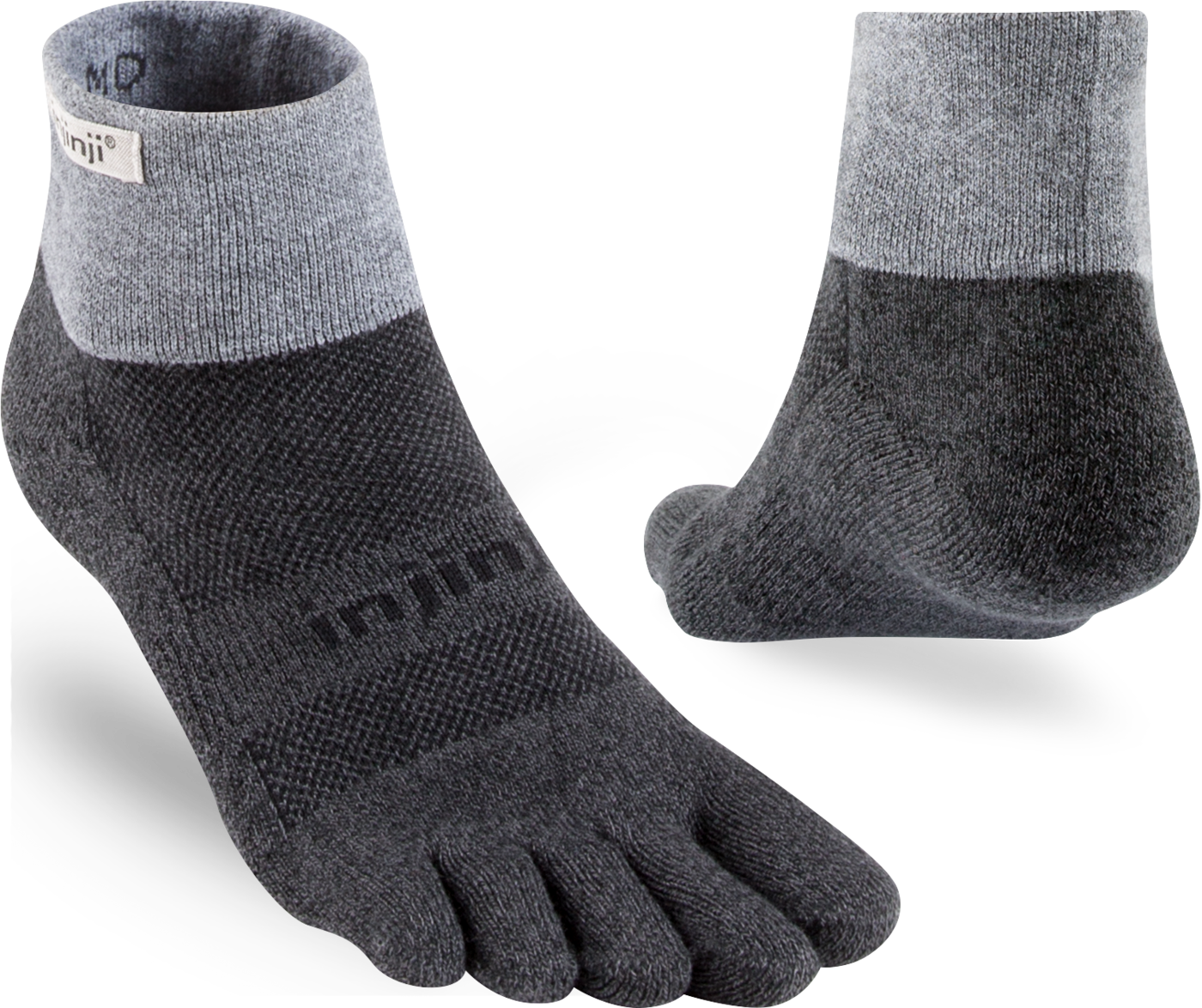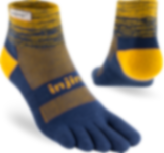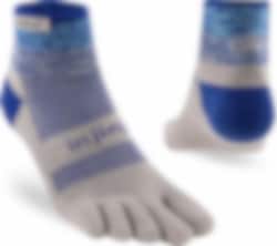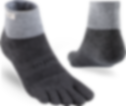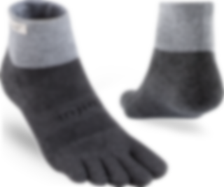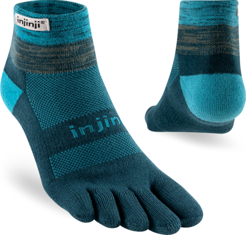 Trailserien til Injinji er konstruert for å takle ujevnt og uforutsigbart terreng, ved å tilby best mulig passform, følelse og beskyttelse i alle typer sko. Med en dobbelt elastisk mansjett, holder man skitt og rask ute. Høyden på denne modell er Minicrew, det vil si like over ankel. Tykkelse er Midweight (medium tykkelse).