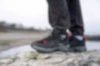 Skoens overdel er laget av en kombinasjon av tekstil og robust 1,4-1,6 mm splittlær, som sikrer god slitestyrke. Den lave ankeldesignen gir større bevegelsesfrihet, samtidig som den medium flexen gir god støtte i terrenget, sammenliknet med for eksempel joggesko som har en lav flex.