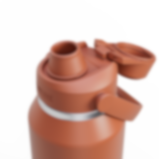 Laget av vakuumisolert rustfritt stål, vil vår Thrive Chug VSS være det første du griper etter når du trenger påfyll av drikke som holder seg iskald hele dagen. Toppen på flasken har en fjærbelastet skrukork. Hver gang du skrur opp toppen så popper korken elegant til siden og holder seg vekk fra ansiktet når du drikker. Drikketuten er laget av silikon og er veldig behagelig å drikke fra. Toppen har også et bærehåndtak festet på seg og gjør det enkelt å ta med seg flasken din overalt.