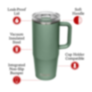 Hold deg opplagt hele dagen med vår Thrive™ Leak-Proof Tumbler 1L. Designet for å stå stødig på nesten alle overflater, vakuumisolert for å holde drikken kald eller varm i flere timer, og med et lekkasjesikkert lokk, vil ditt neste eventyr være uten uhell. Tumbleren kommer med et praktisk håndtak for lettere bruk.