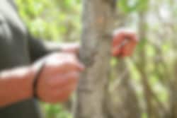 Bladet av rustfritt stål skjærer tre, plast, ben, gummi og mykt metall. Unik konstruksjon med åtte kordeler. Solide håndleddsstropper i nylon. Kan brukes som snare ved å tre den ene håndleddsstroppen gjennom den andre. Trygg å håndtere.