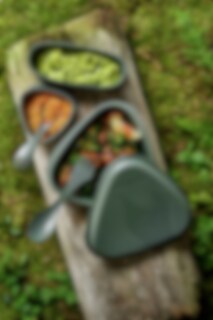 Dette allsidige 6-delers LunchKit 2.0 er funksjonelt og designet for stilig servering på farten. Settet gir matoppbevaringsløsninger med sikre snap-lokk som er ideelle for reiser. Når det er pakket ut, kan settet brukes som tallerken og bolle. Det inkluderer den originale svenske Spork – en ikonisk kombinasjon av skje, gaffel og kniv – og en mindre versjon av den samme, Spork Little, som fungerer som en kombinasjon av skje og gaffel. Når det er på tide å dra, kan settet pakkes sammen og pakkes lett. Settet er laget av 100 % BPA-fri plast som er godkjent av EU og FDA for matvarer, og tåler mikrobølgeovn og oppvaskmaskin.