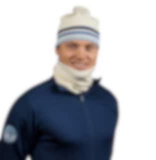Lue i retro design og Skiforeningens farger i striper. Luen har en vevet etikett med Skiforeningen logo og behagelig fleece for.