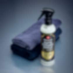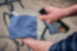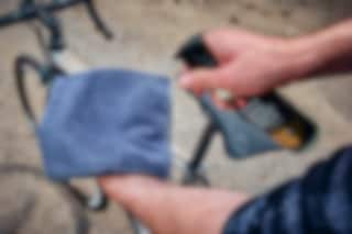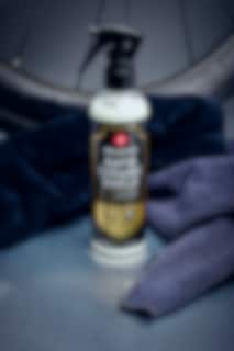 BRUK: Spray Rapid Ceramic Shield på den grå kluten (fukt kluten først for beste resultater). Tørk ned sykkelrammen, unngå kontakt med skiver og andre bremsekomponenter. Poler rammen med den grøveste kluten. Gjenta prosessen mellom turene for beste resultater.